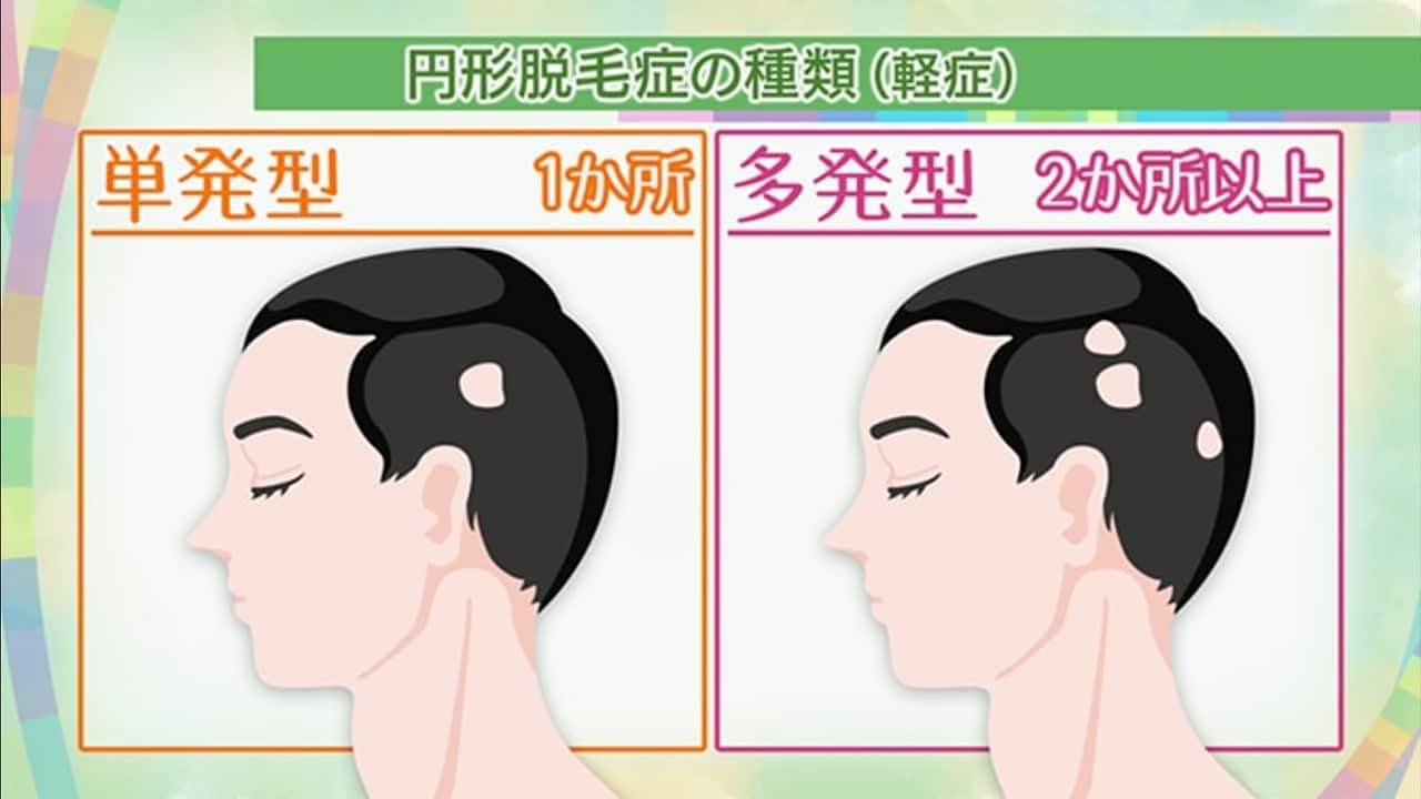 ・通常単発型: 脱毛部分が1カ所 *円形脱毛症と呼んでいるものは通常単発型だとか。